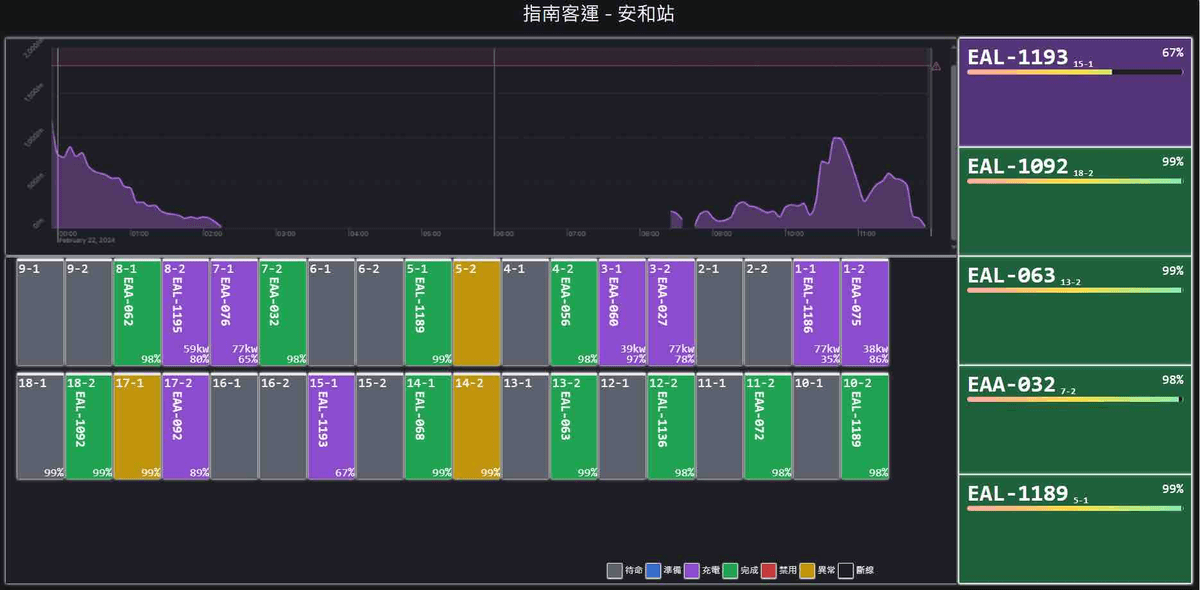 - 串接即時車輛動態資訊(車隊),預先安排充電時機及充電樁,提升營運調度效率